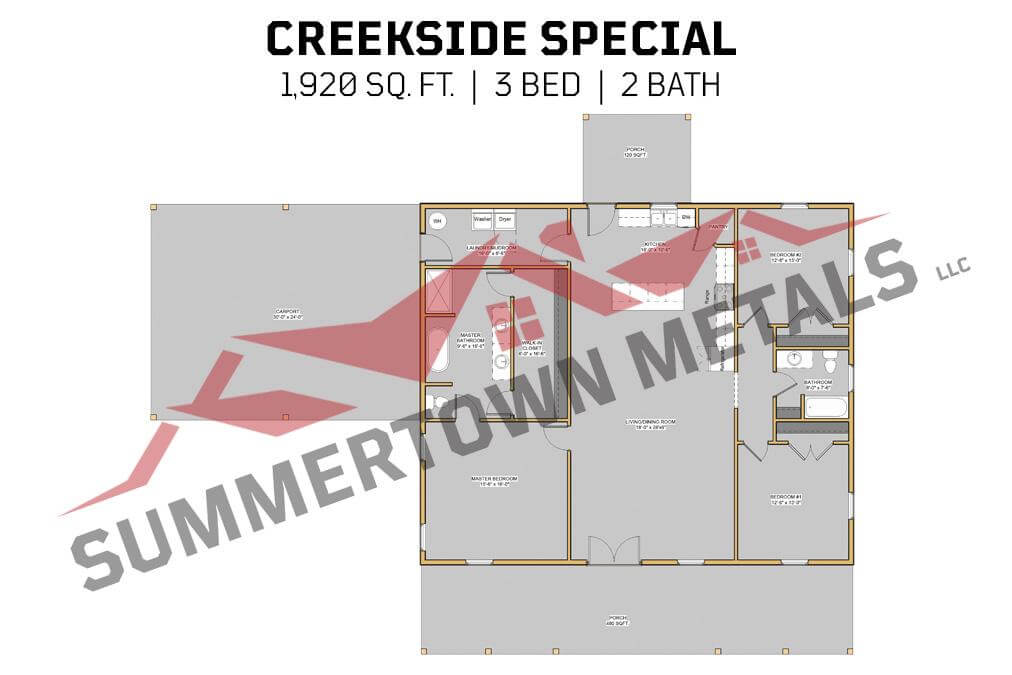 Price includes turnkey interior by a licensed and insured contractor and the interior wall as detailed in the floor plan. Turnkey options are limited to those shown on our turnkey page. Summertown Metals is committed to delivering exceptional service to our customers. To ensure this quality, our turnkey homes are available throughout Tennessee and within a 200-mile radius of our branch locations in Summertown, TN, Hopkinsville, KY, and Hayden, AL.
