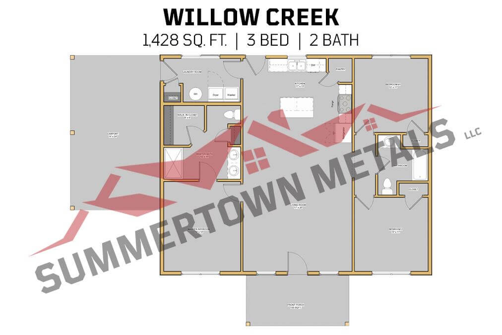 Price includes turnkey interior by a licensed and insured contractor and the interior wall as detailed in the floor plan. Turnkey options are limited to those shown on our turnkey page. Summertown Metals is committed to delivering exceptional service to our customers. To ensure this quality, our turnkey homes are available throughout Tennessee and within a 200-mile radius of our branch locations in Summertown, TN, Hopkinsville, KY, and Hayden, AL.